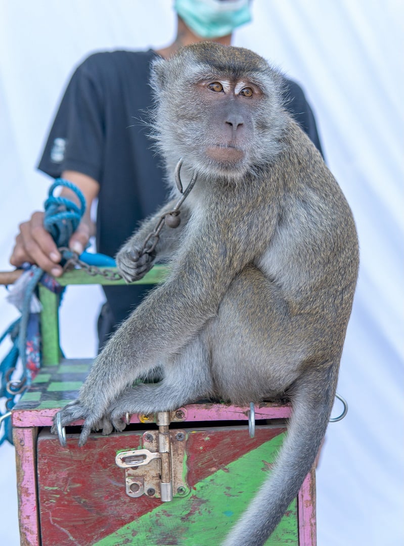 Durant six longues années, Jono a été confiné dans une petite caisse en bois. Il ne pouvait en sortir que pour faire des tours devant les touristes. Vêtu de costumes et forcé de danser, Jono vivait dans un monde de souffrance et d’isolement. Il s’est cassé les dents et l’infection s’est répandue à travers son visage. Il n’avait aucune possibilité de grimper, d’explorer pour trouver de la nourriture, ni de connaître la vie qu’il méritait.