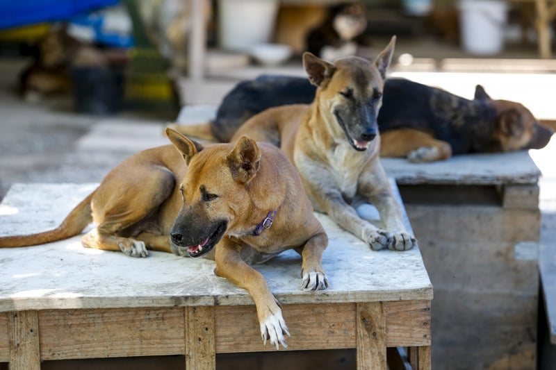 Le temple Wat Hua Koo à Bangkok a été submergé de chiens vagabonds affamés.